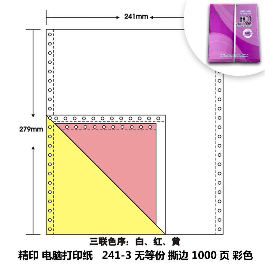 精印 241-3 無等份撕邊電腦打印紙 1000頁 白色