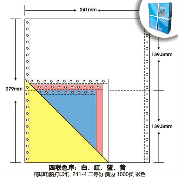 精印 241-4 彩色撕邊二等份打印紙 1000頁