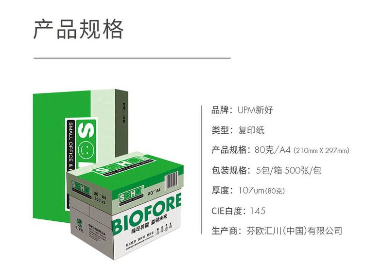 UPM綠新好(SOHO) 80g 復印紙 A4 白色 500張/包
