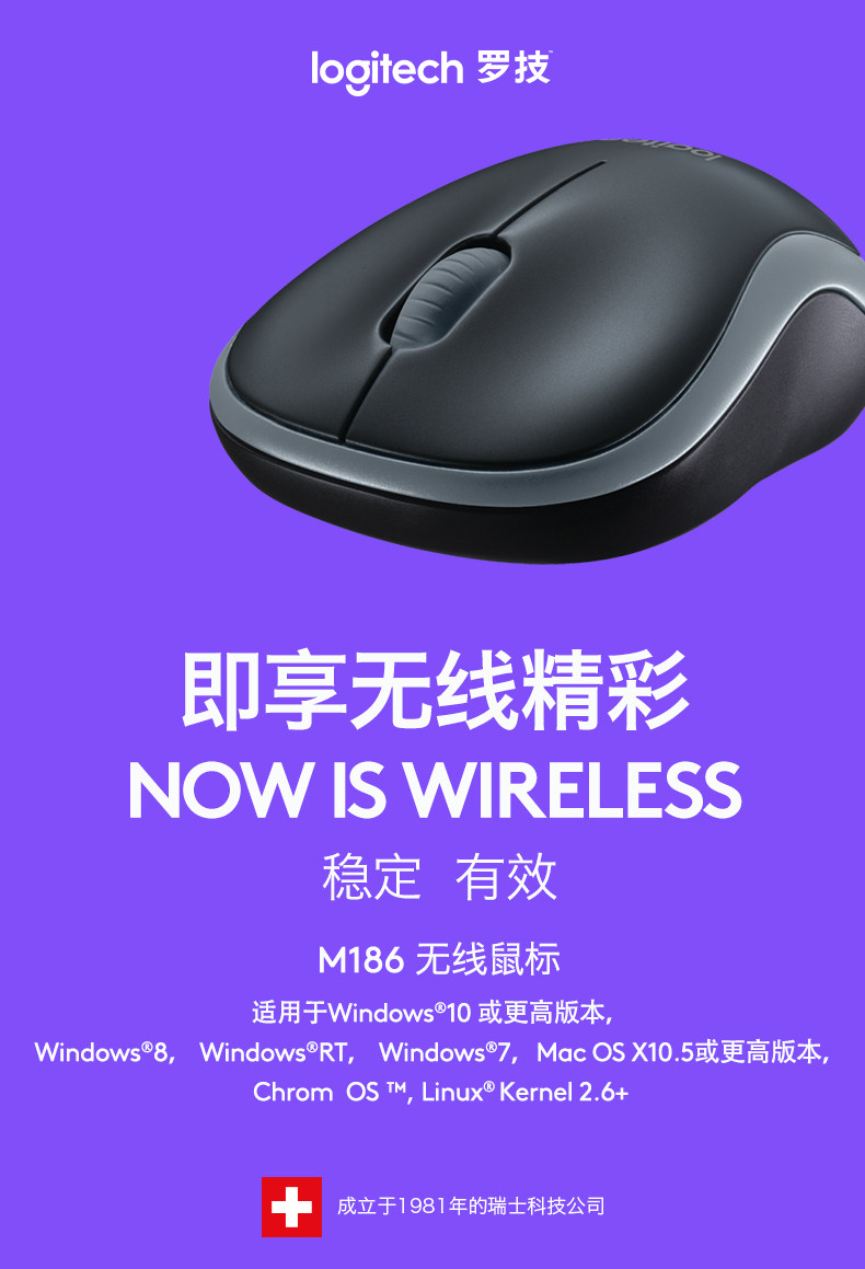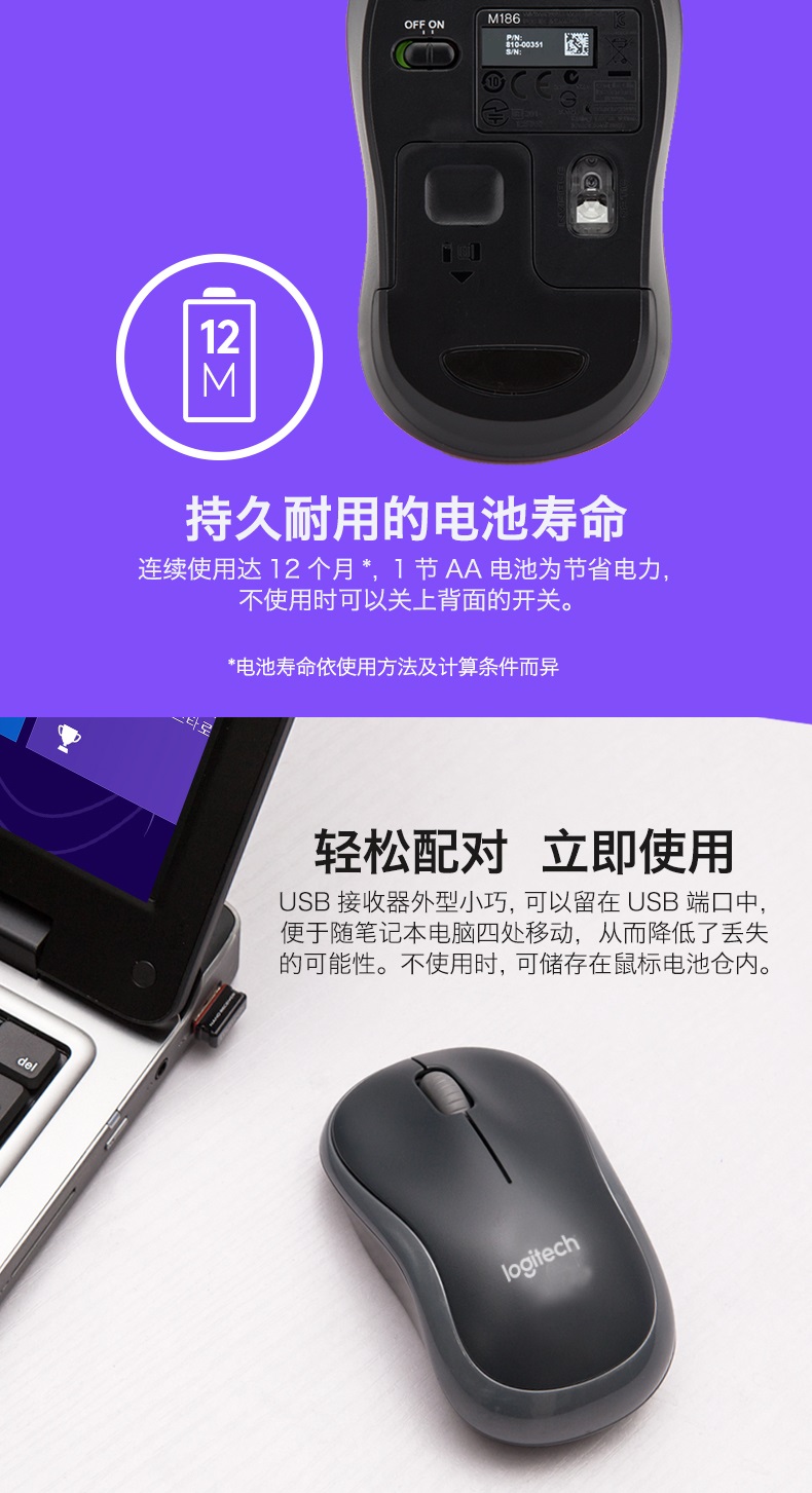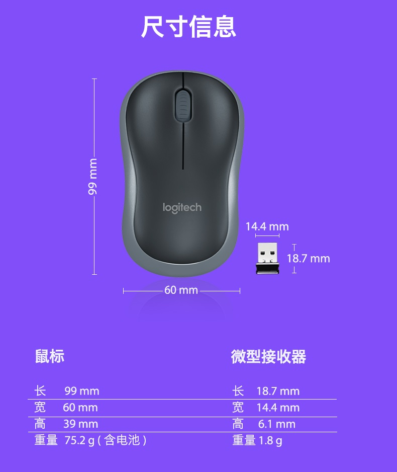 羅技 M185 無線鼠標(biāo) 灰黑色