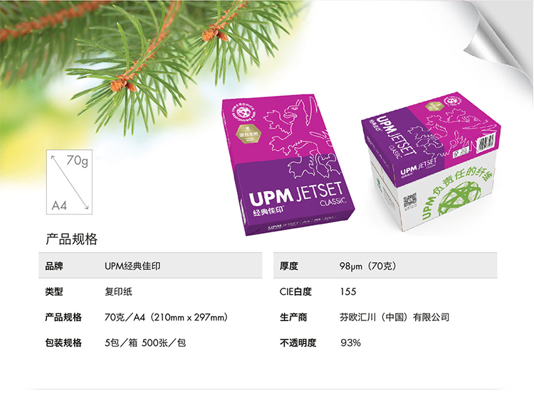 UPM經(jīng)典佳印 70g 復(fù)印紙 A4 白色 500張/包