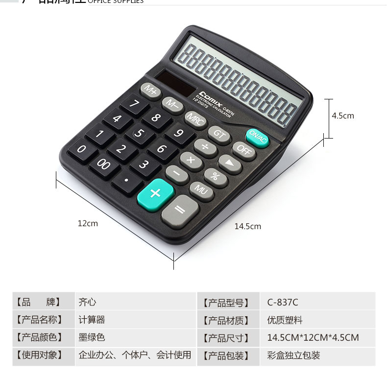 齊心 C-837H 臺式計(jì)算器 12位 黑色