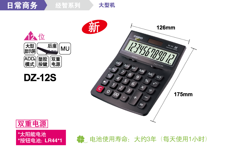 卡西歐 DZ-12S 商務(wù)計算器 黑色
