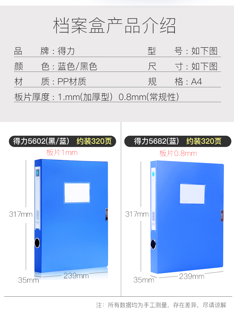 得力 5602 粘扣檔案盒 A4 黑色 35mm