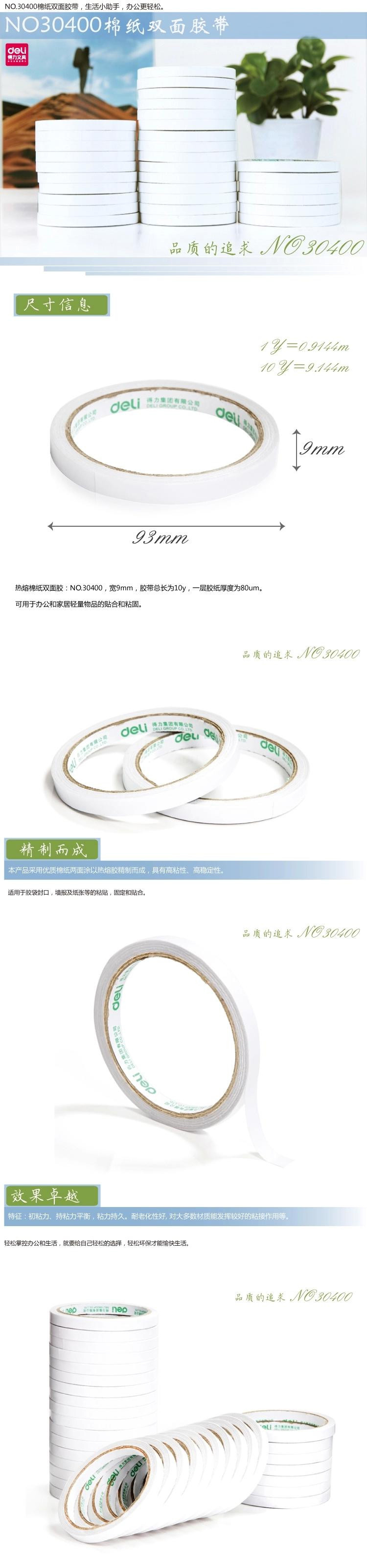 得力 30400 棉紙雙面膠帶 9mm*10y*80um 白色