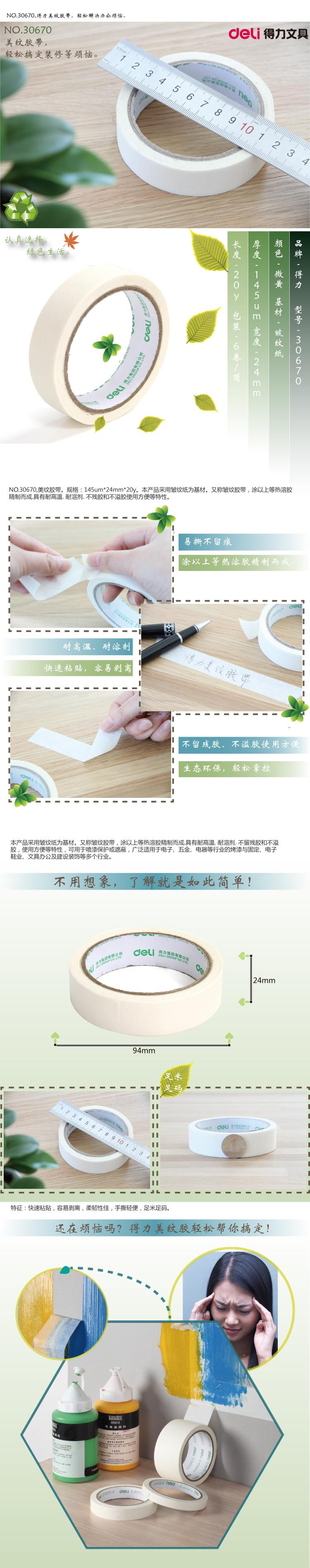 得力 30670 美紋紙膠帶 24mm*20y*145um 白色 按卷銷售