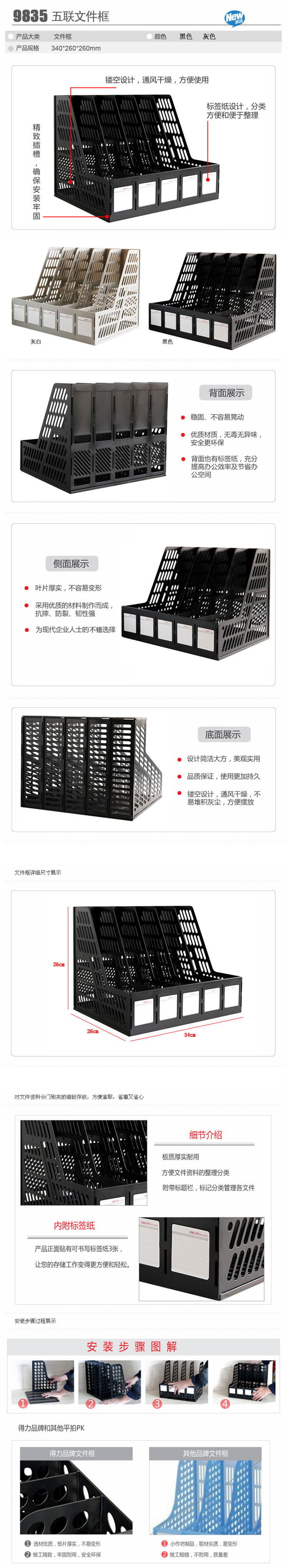 得力 9835 五聯(lián)文件框 黑色