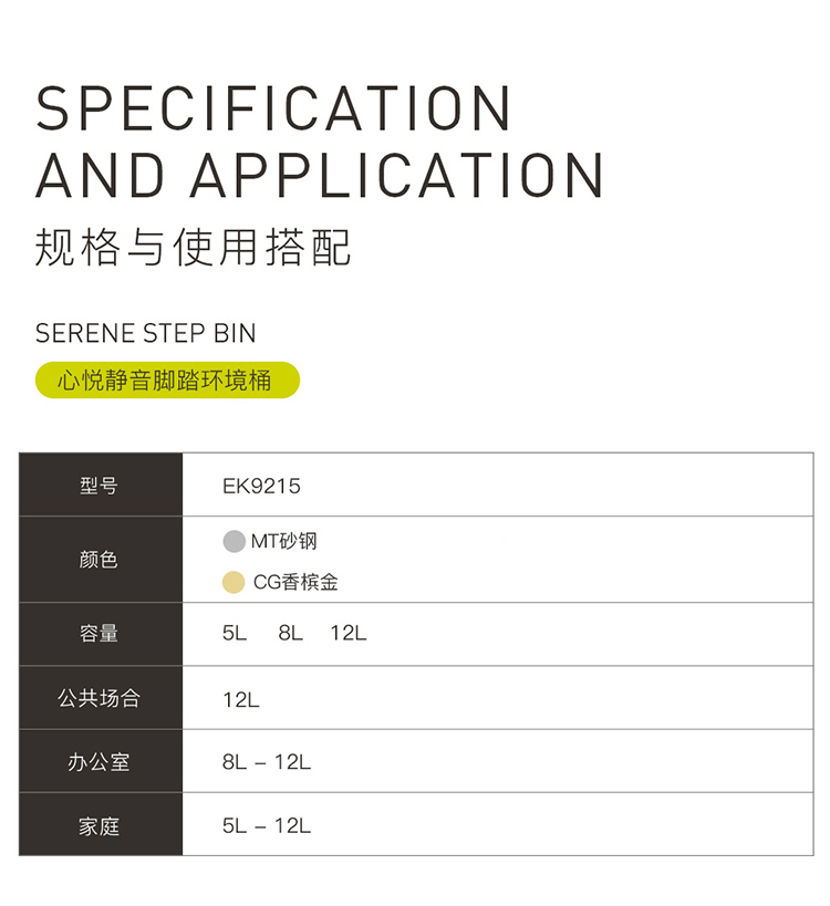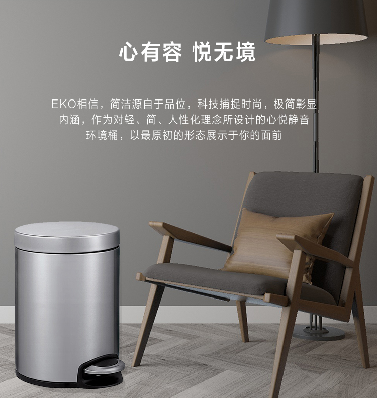 EKO 9215 心悅圓形腳踏靜音垃圾桶 12L 砂鋼色