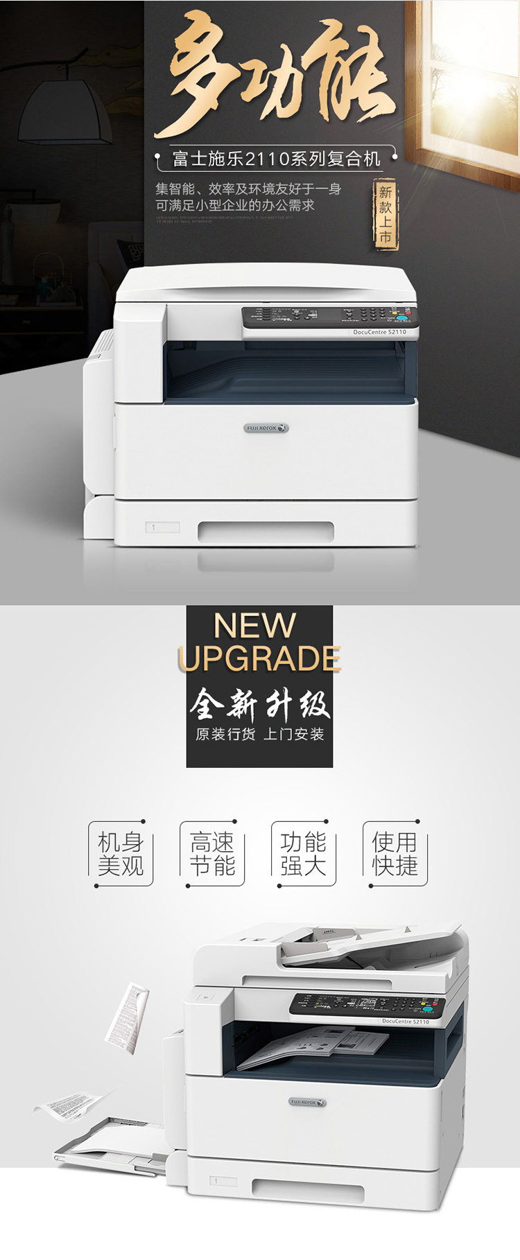 富士施樂(lè) DC S2110NDA A3黑白數(shù)碼復(fù)合機(jī) 21頁(yè)/分鐘 標(biāo)配雙面輸稿器單紙盒