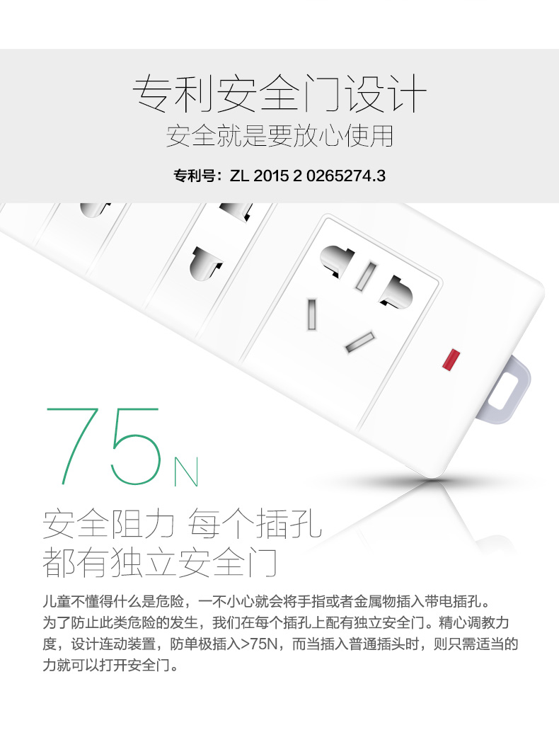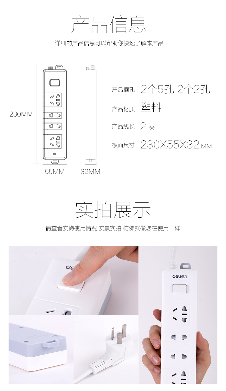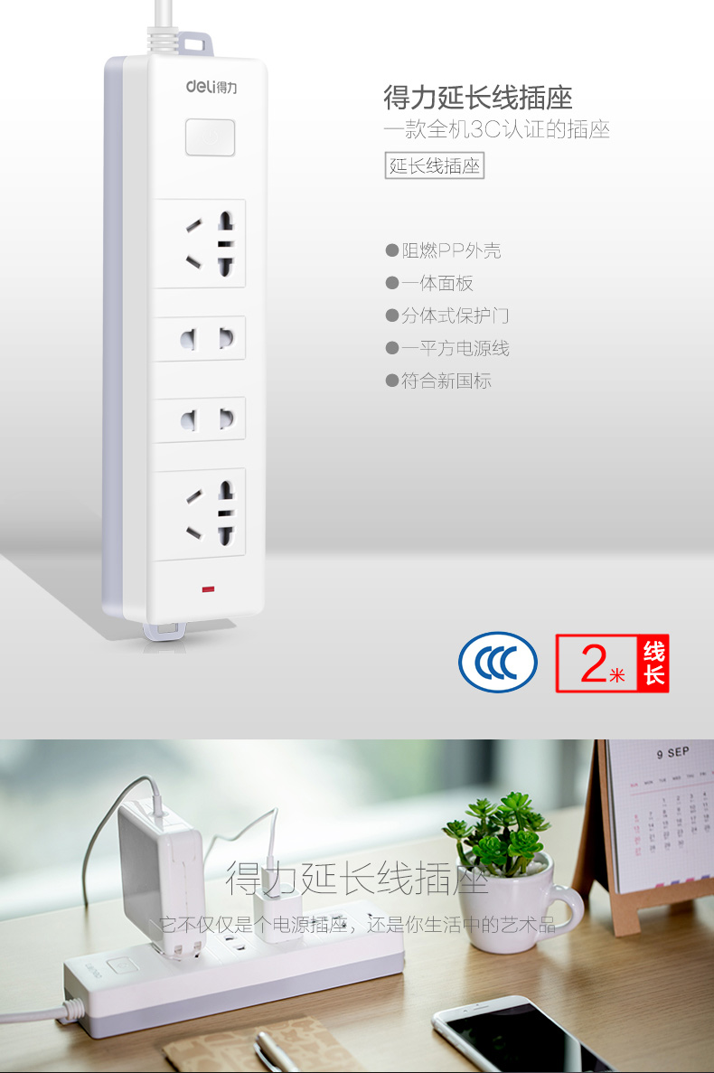 得力 18251 單控四聯(lián)接線板插座 2米 白色