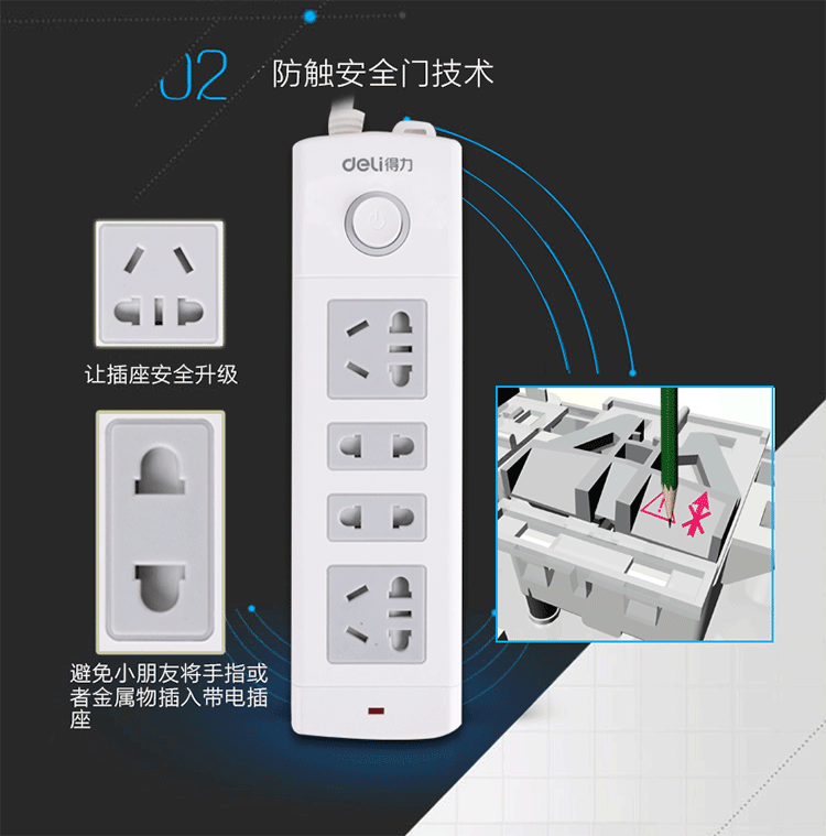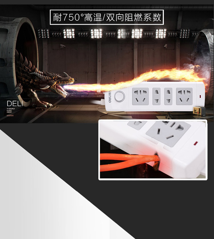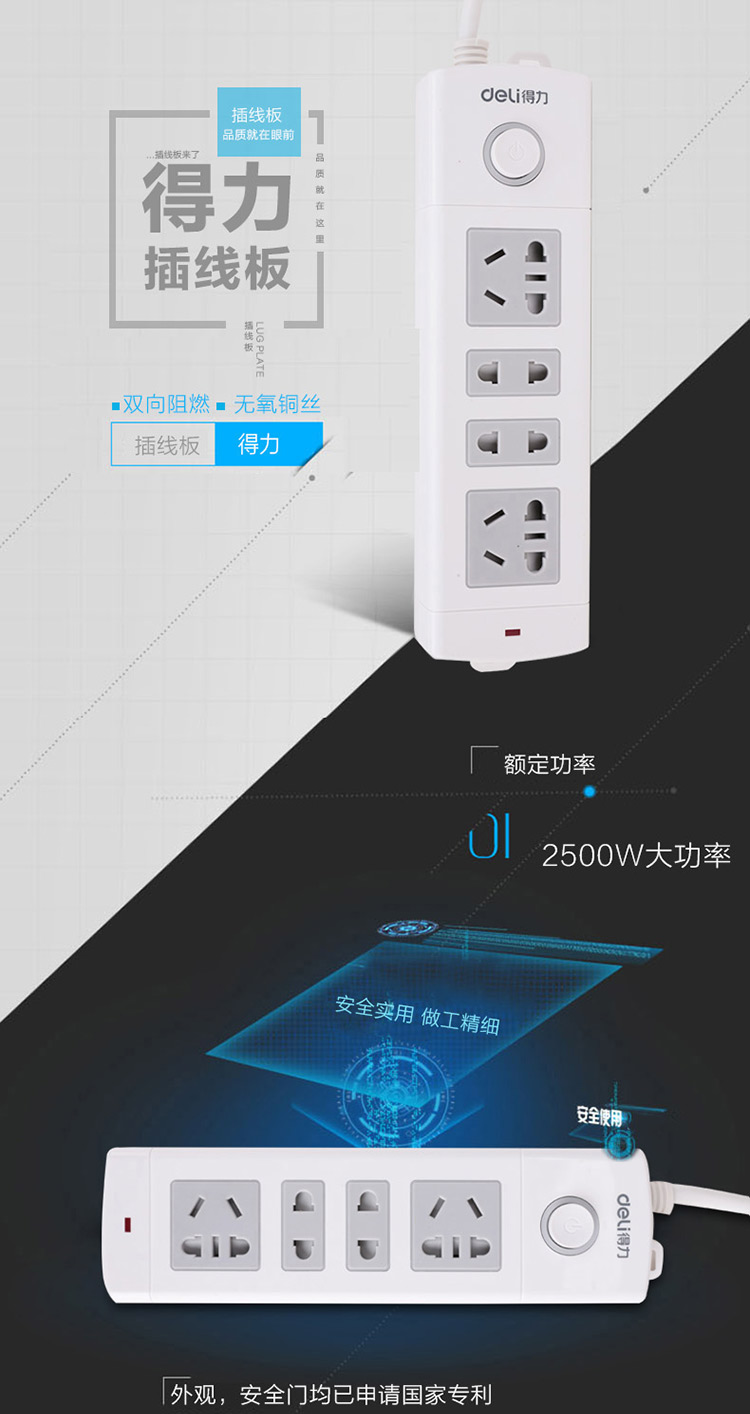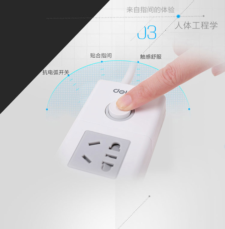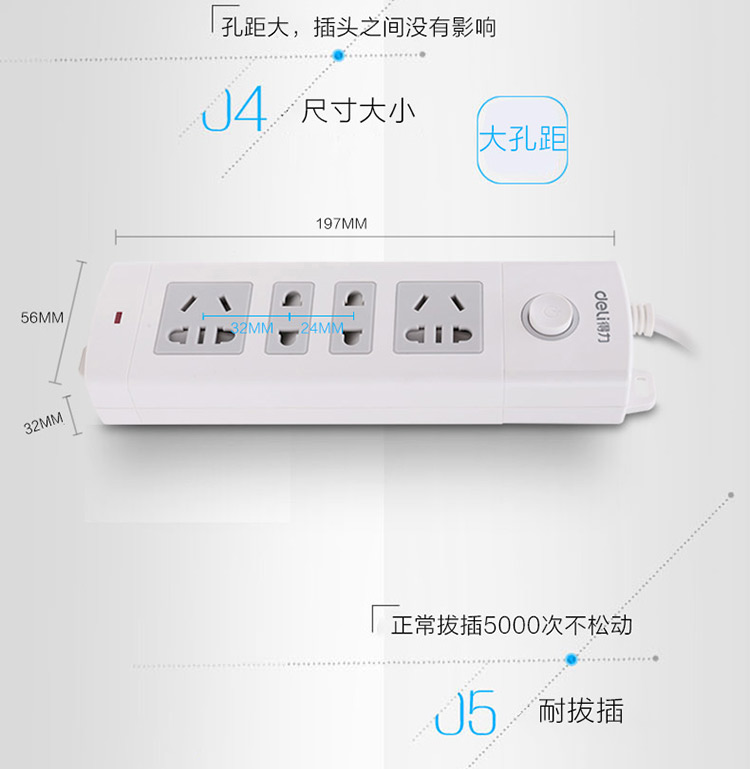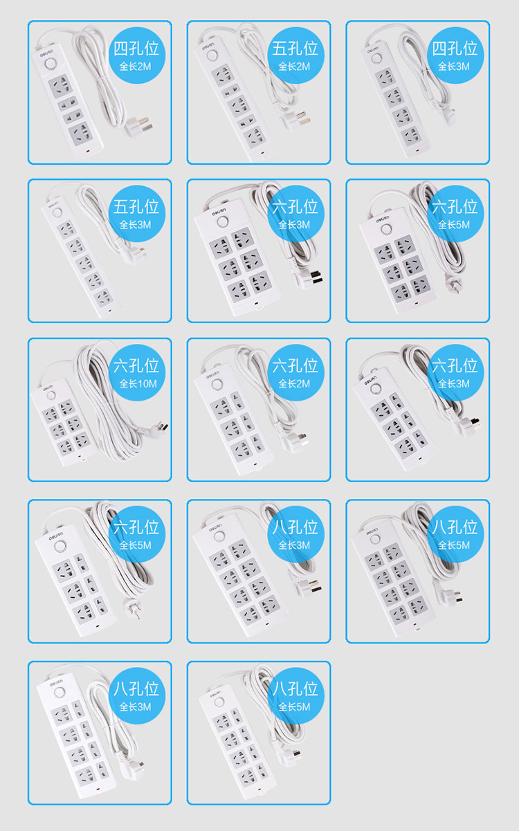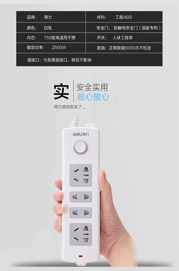 得力 18262 單控八聯(lián)接線板插座 3米 白色