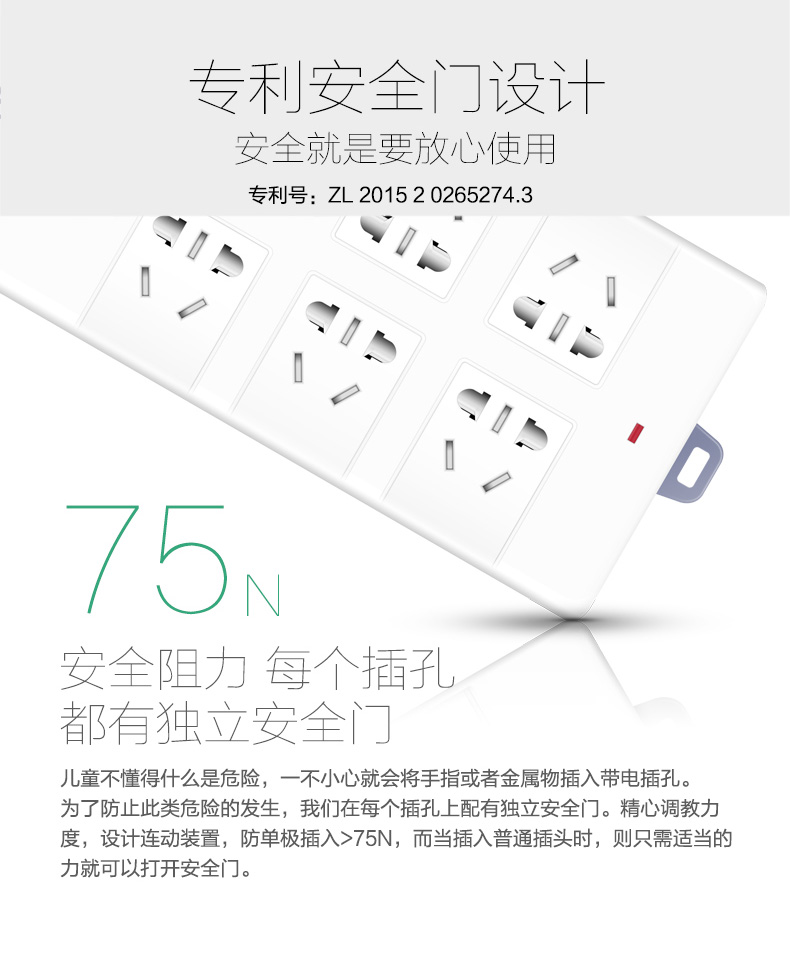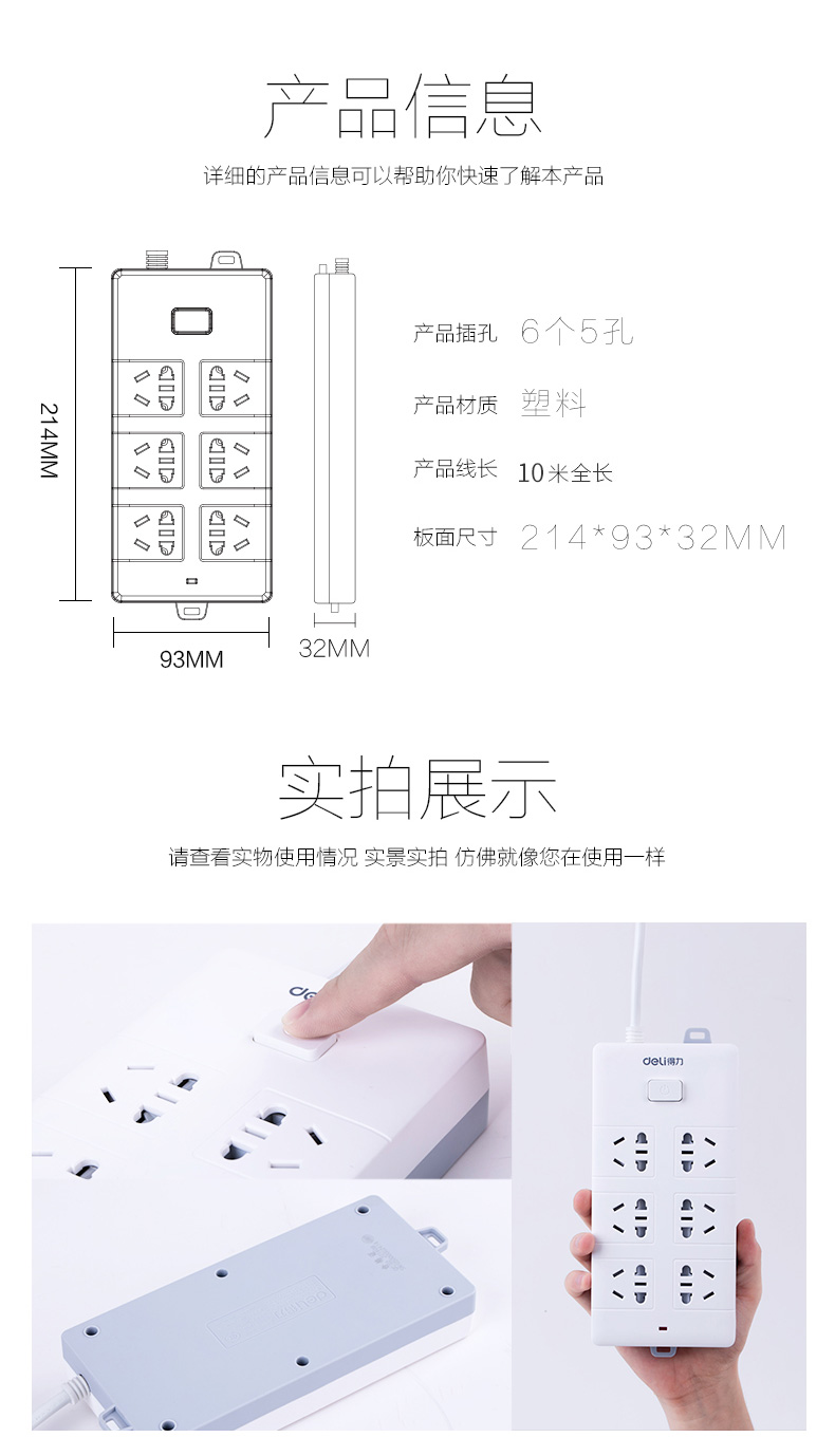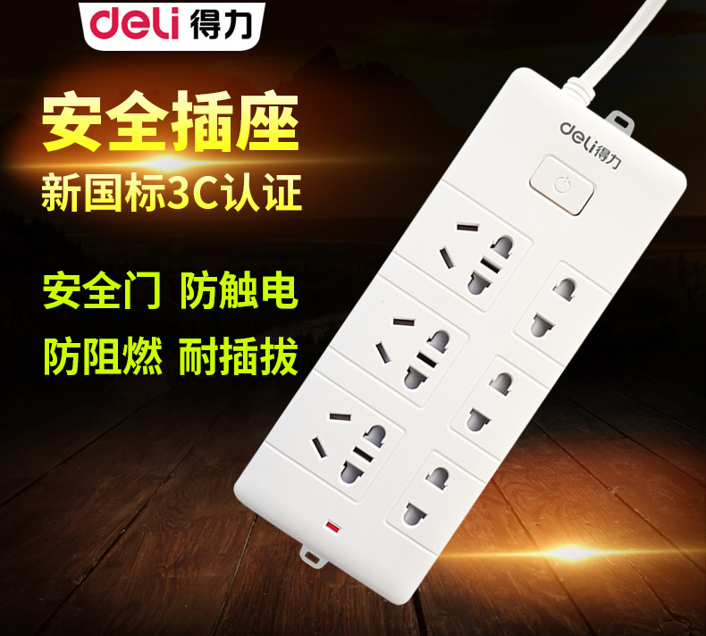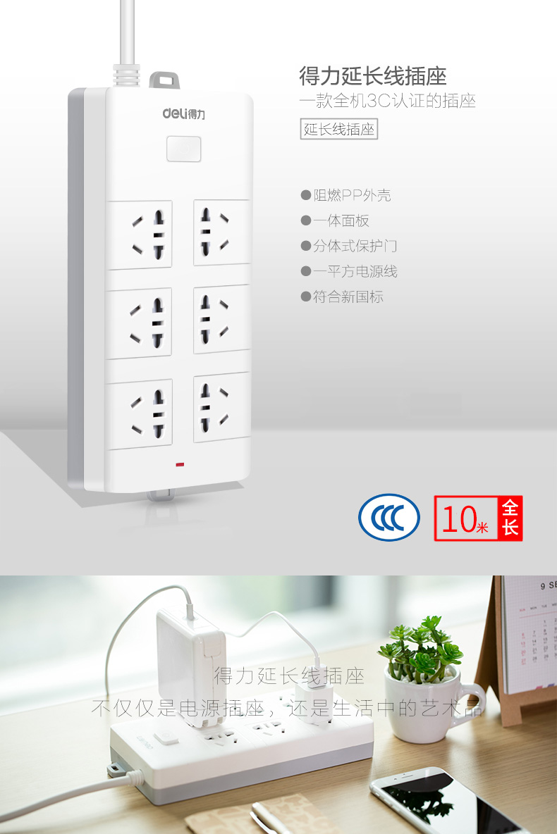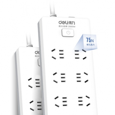 得力 18264 單控八聯(lián)接線板插座 10米 白色