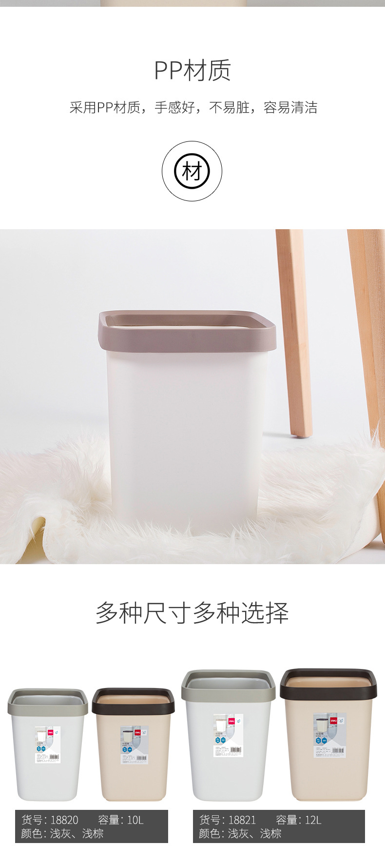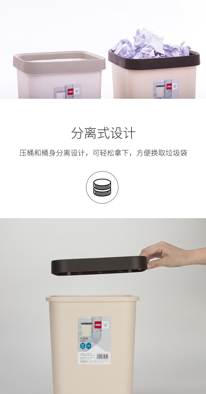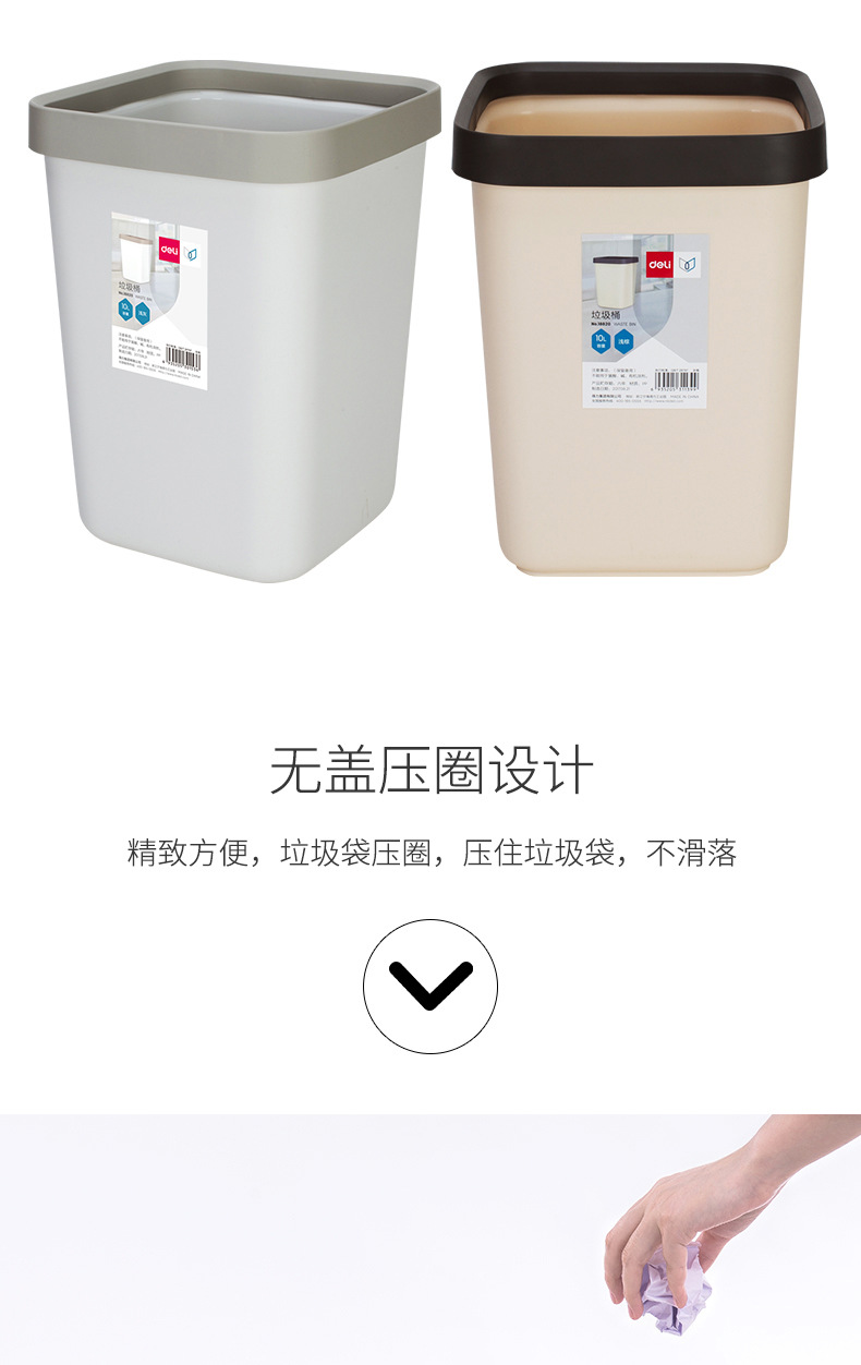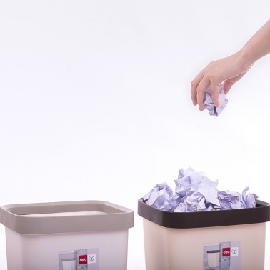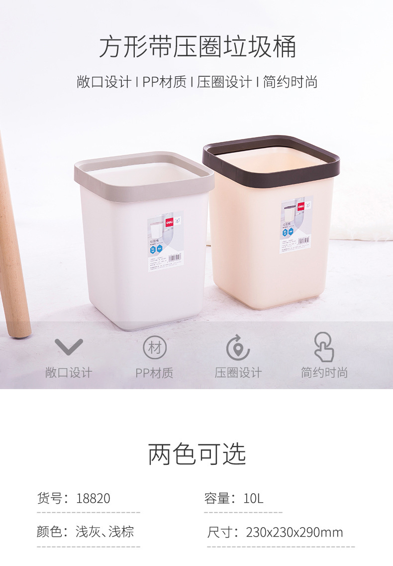 得力 18820 方形帶壓圈垃圾桶 10L 淺灰