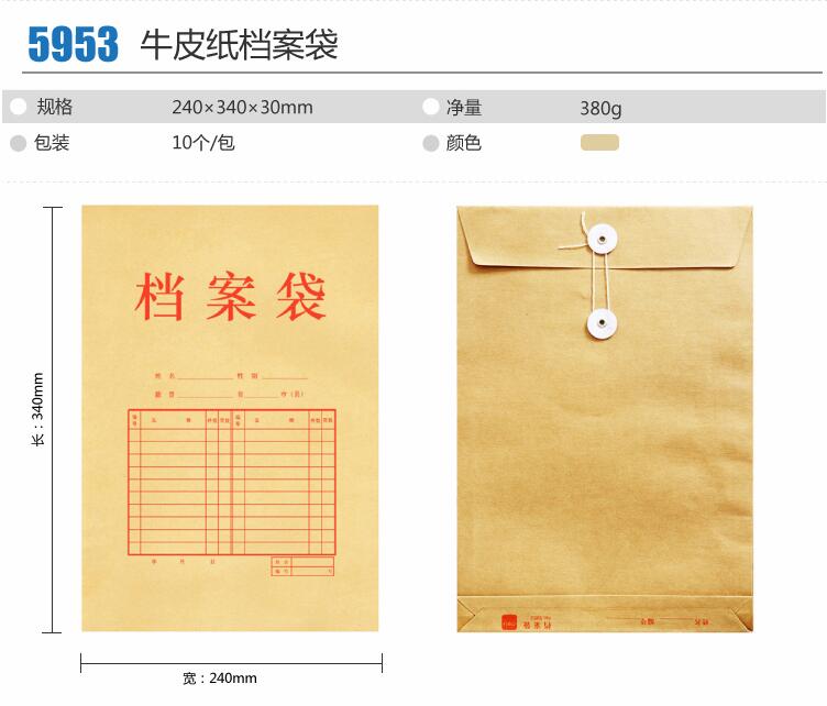 得力 5953 牛皮紙檔案袋 A4 米黃色 10只/包