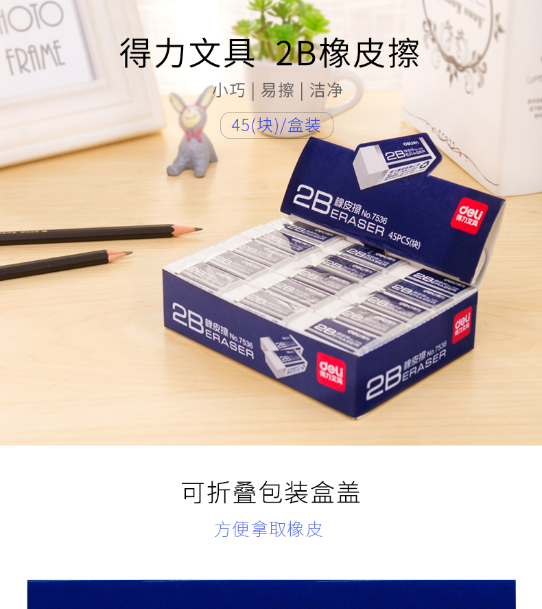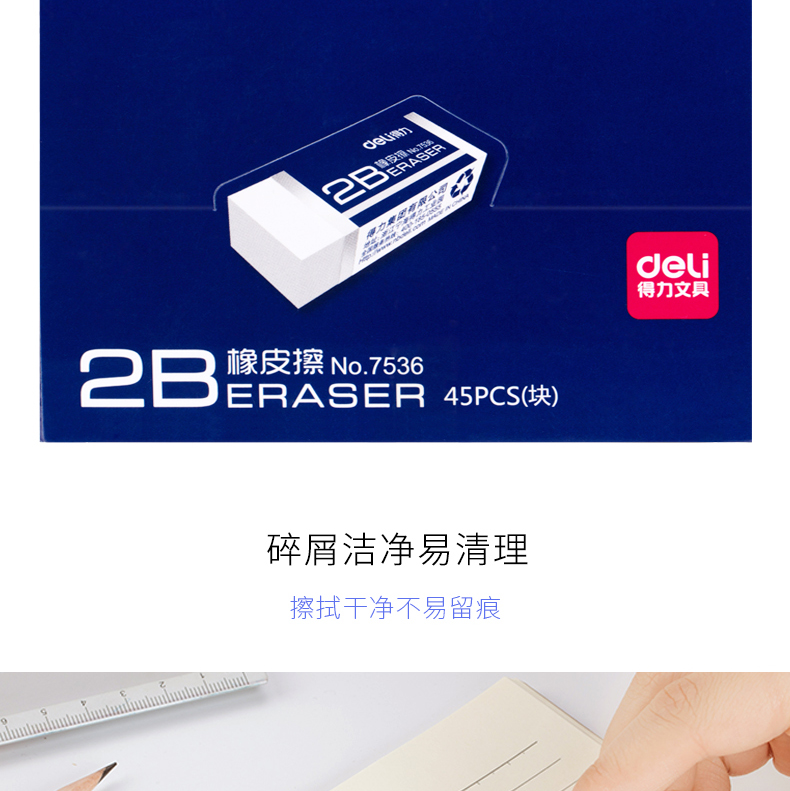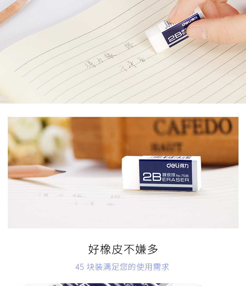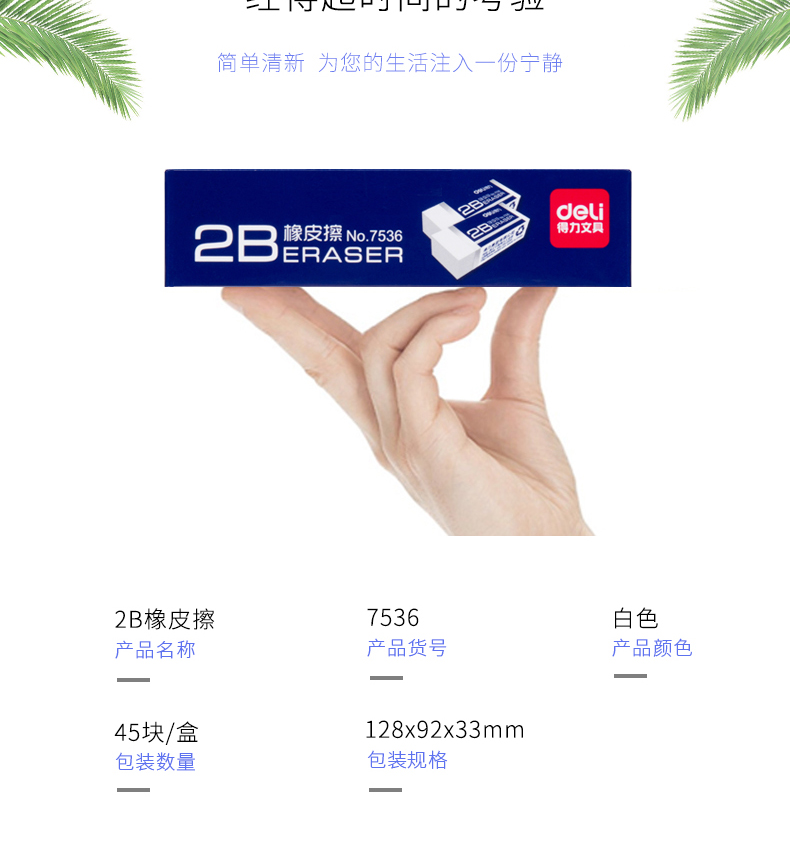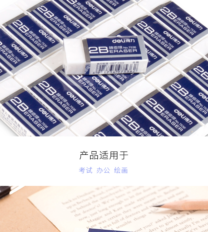 得力 7536 橡皮擦 2B 白色