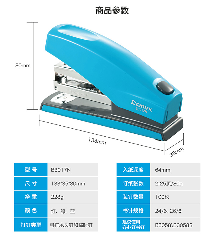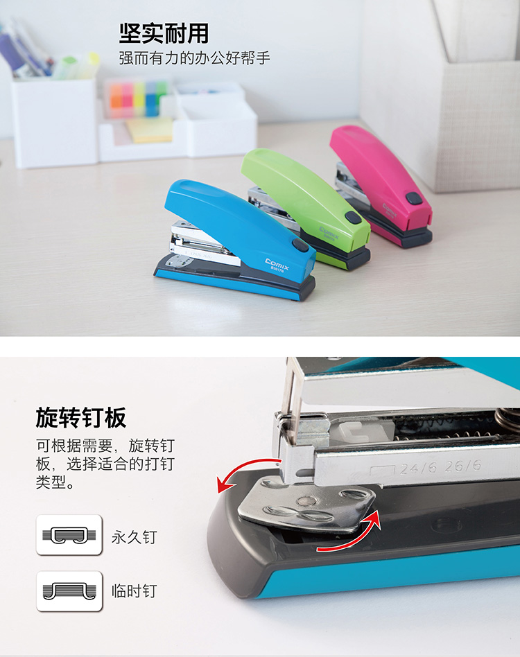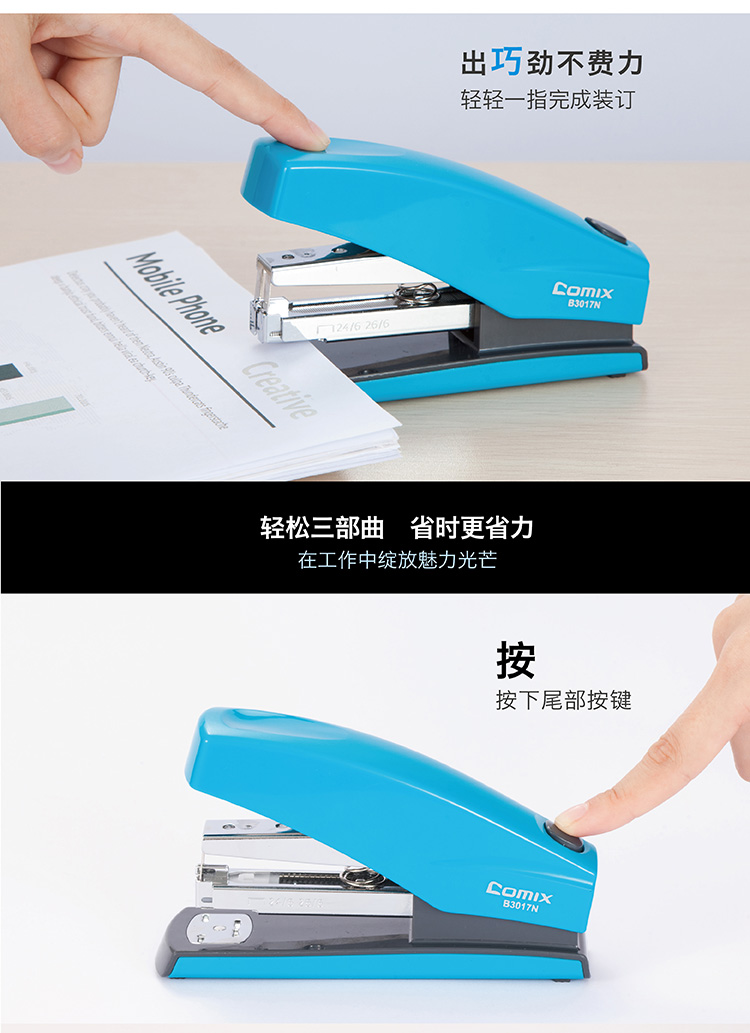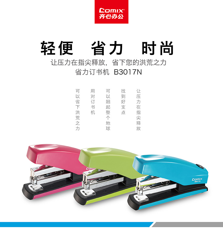 齊心(Comix) B3017N 時(shí)尚炫彩型省力訂書機(jī) 12# 混色