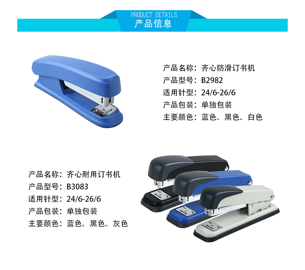 齊心 B2982 防滑穿透訂書機(jī) 12# 顏色隨機(jī)