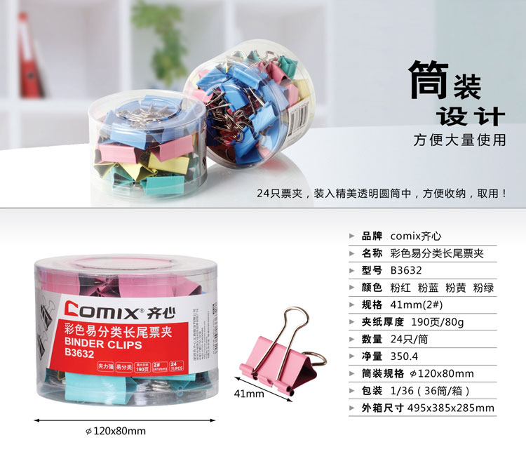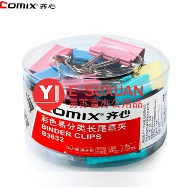 齊心 B3632 彩色長(zhǎng)尾票夾 41mm 24只/筒
