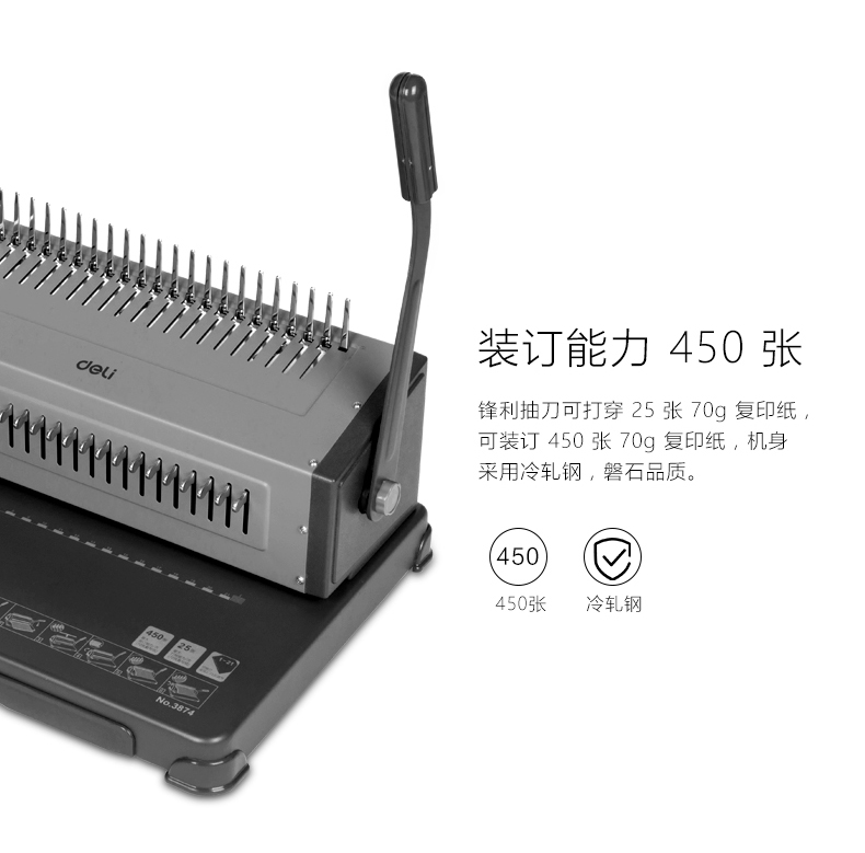 得力 3874 重型膠圈裝訂機 A4 灰色