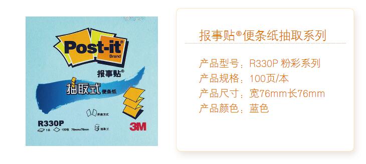3M R330P 抽取式報事貼便條紙 76*76mm 藍色