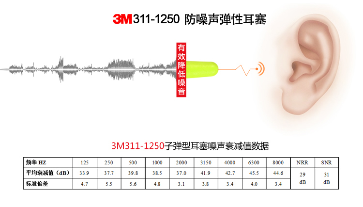 3M 312-1250 高降噪防護(hù)耳塞 200副/盒