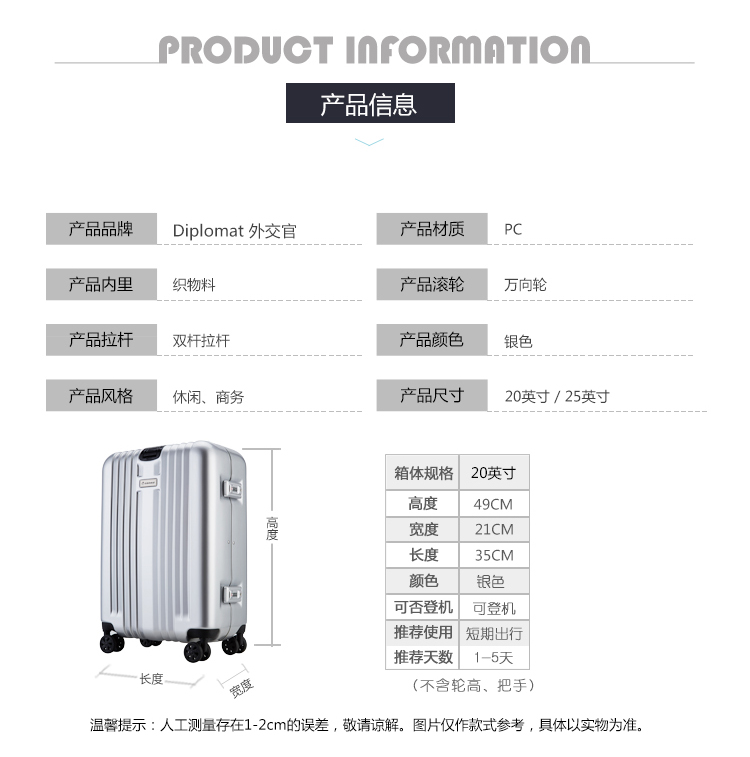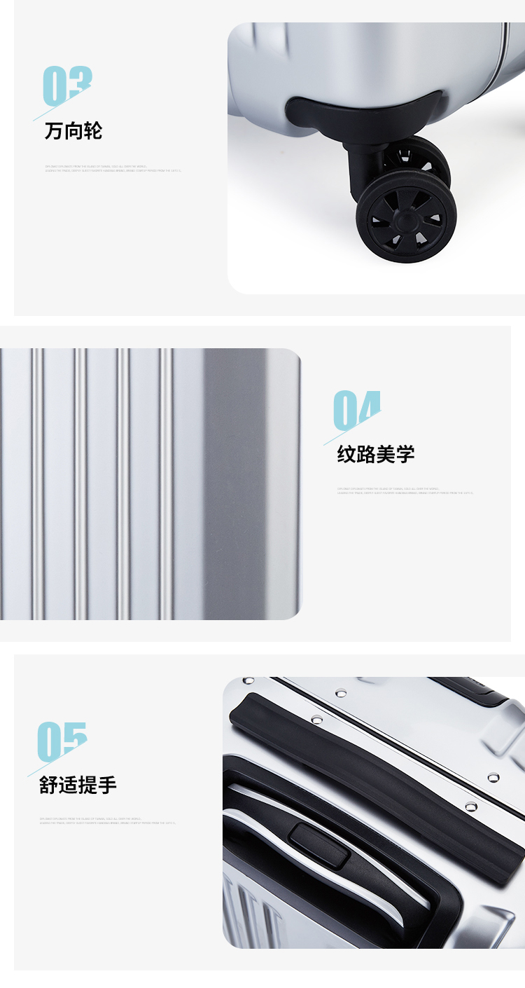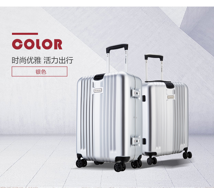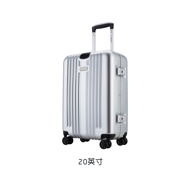 拉桿種類:雙桿 顏色:銀色 是否帶鎖:是 箱包硬度:硬箱 閉合方式:拉鏈