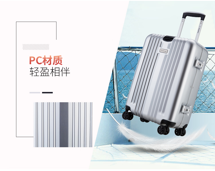 鎖具方式:TSA海關(guān)鎖 材質(zhì):PC 尺寸:20英寸 輪子種類:萬向