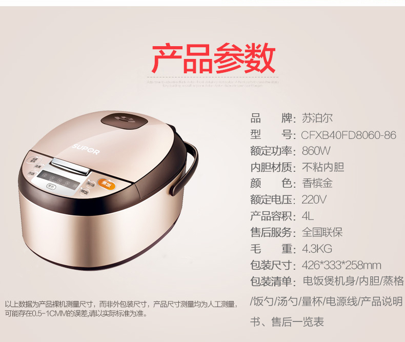 蘇泊爾 CFXB40FD8060-86 智能家用電飯煲 4L