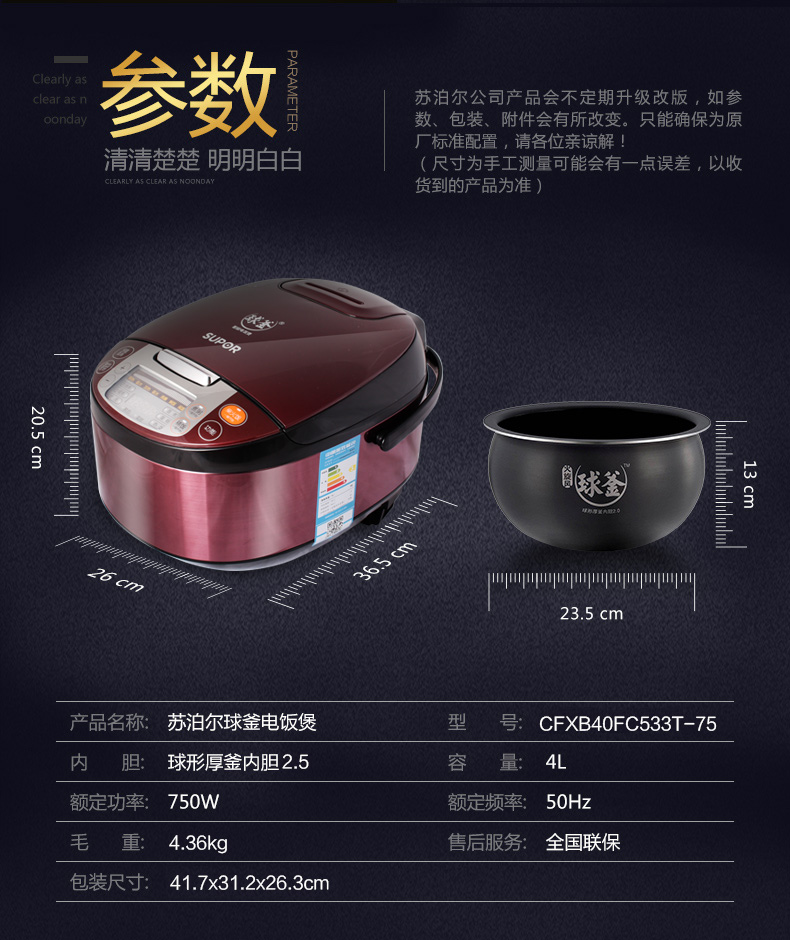 蘇泊爾 CFXB40FC533T-75 智能球釜電飯煲 4L