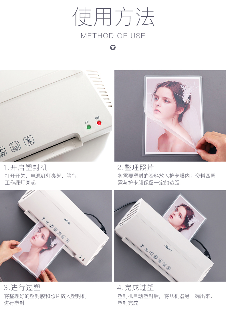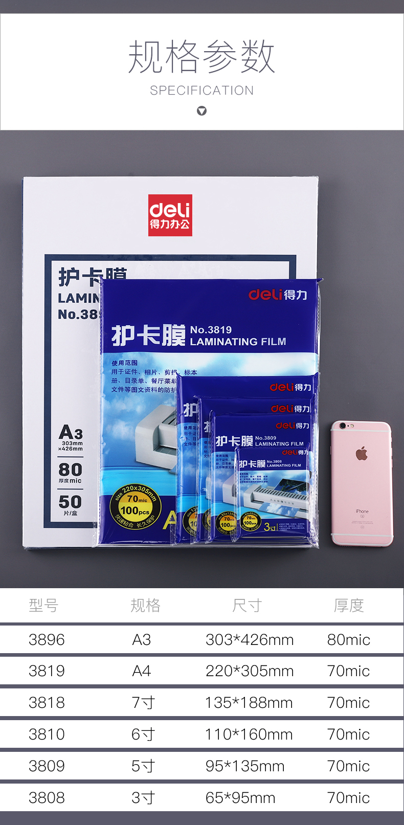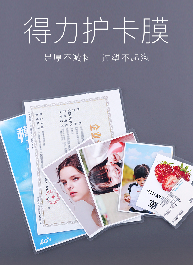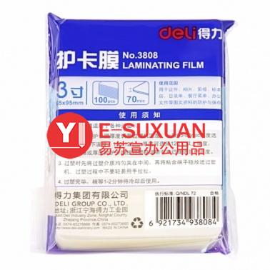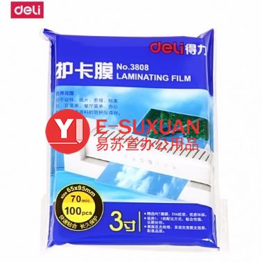 得力 3808 塑封膜 3寸 70mic 透明白色 100張/包