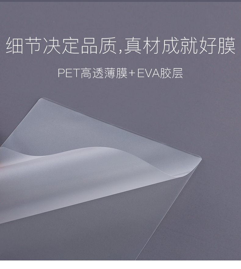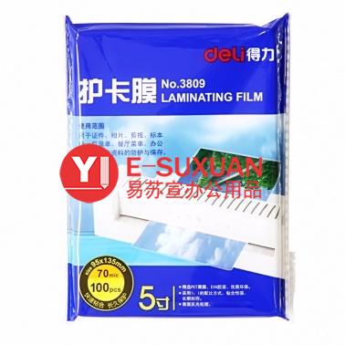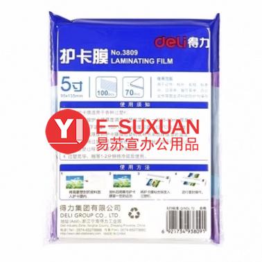 得力 3809 塑封膜 5寸 70mic 透明白色 100張/包