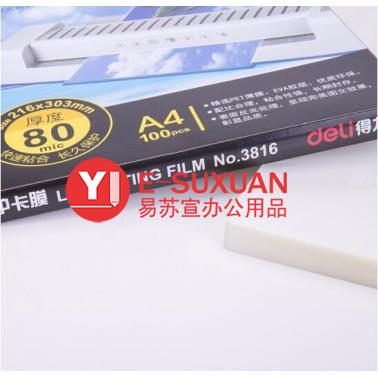得力 3816 塑封膜 A4 80mic 透明白色 100張/包