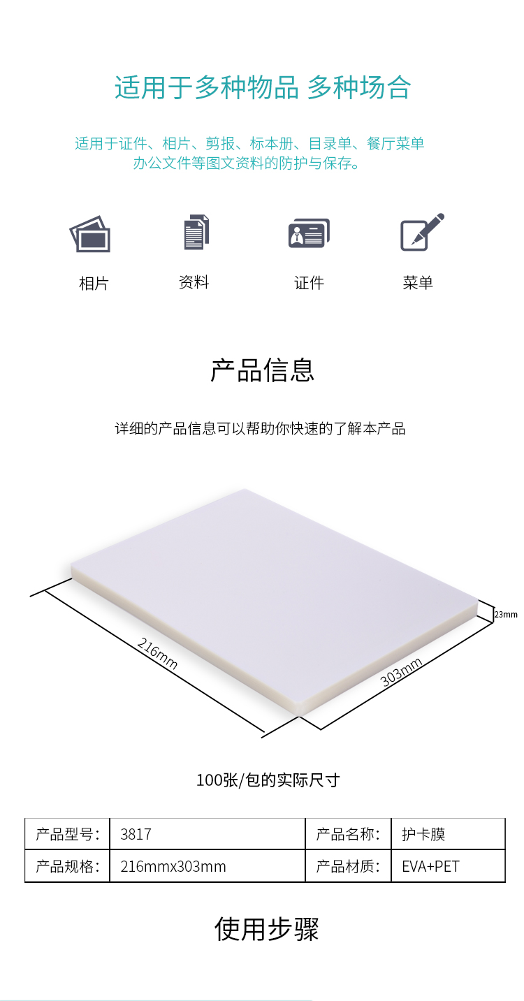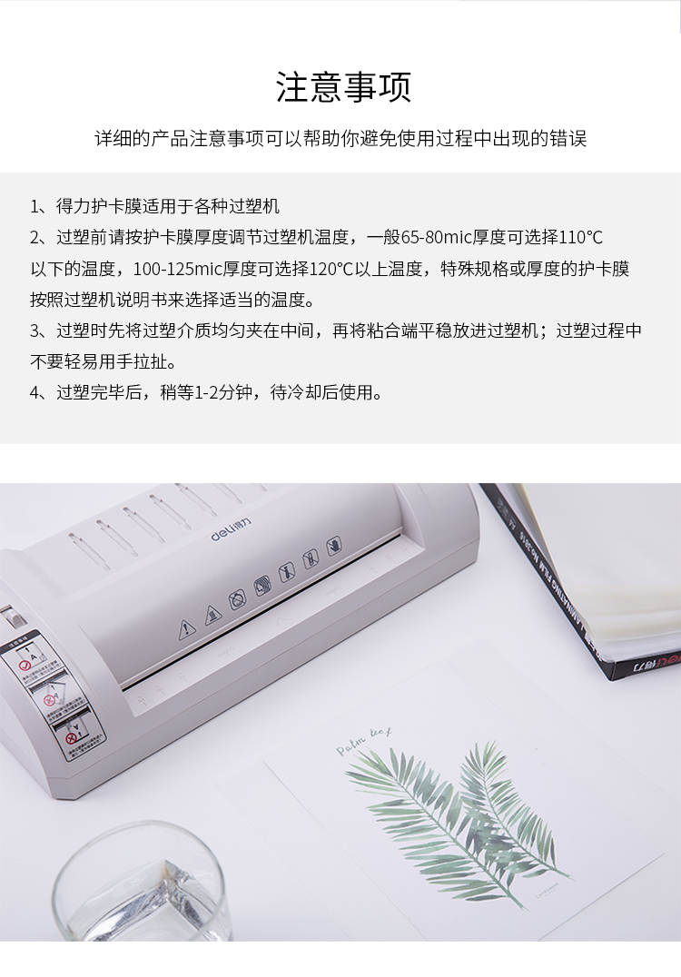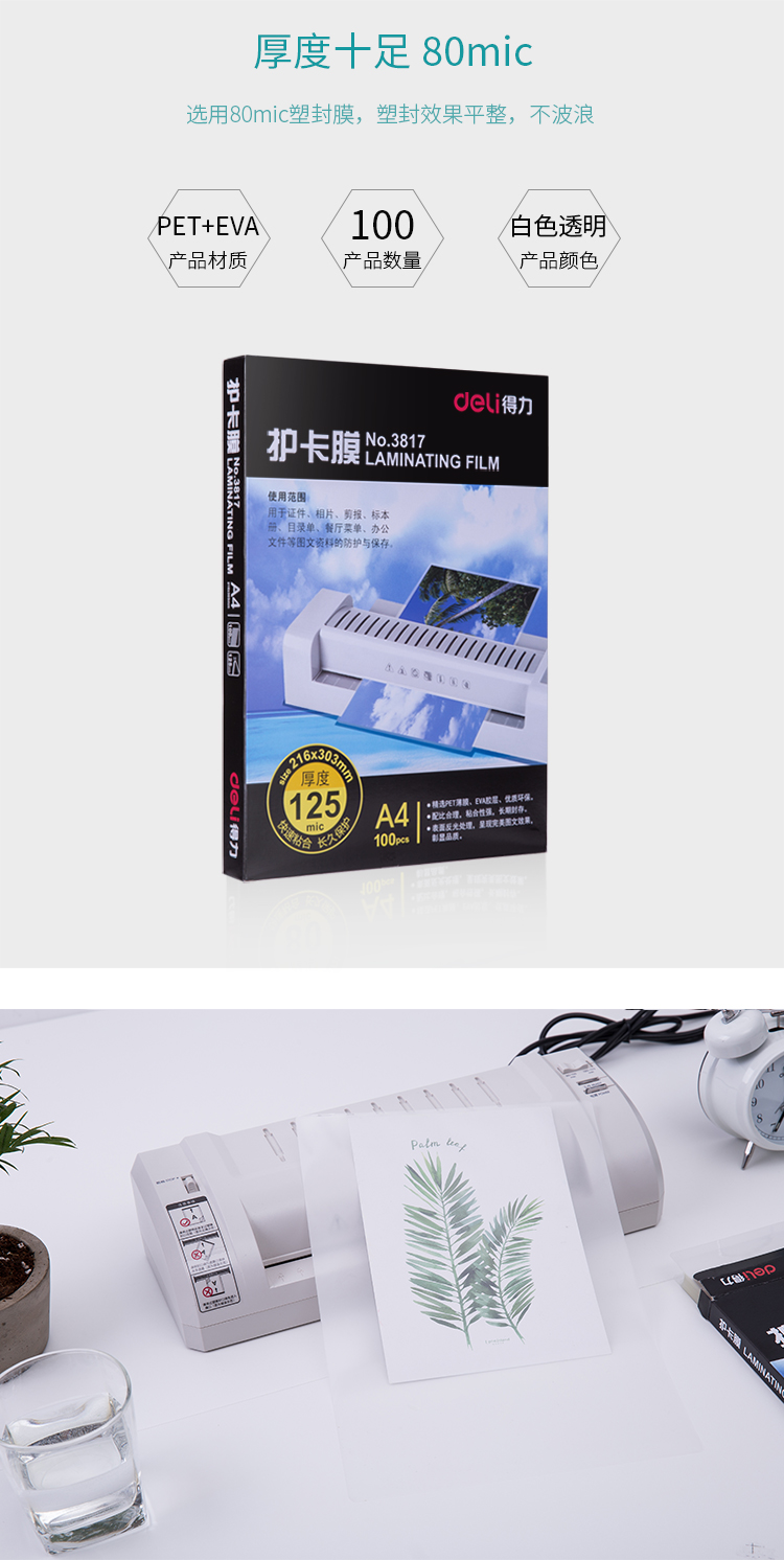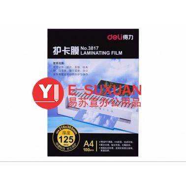 得力 3817 加厚型塑封膜 A4 125mic 透明白色 100張/包