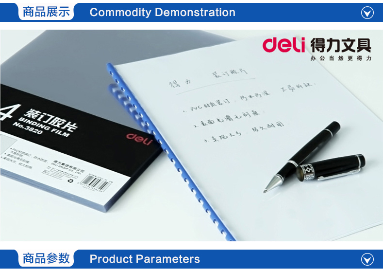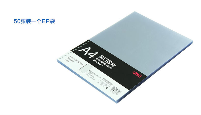 得力 3820 PVC裝訂膠片 A4 0.2mm 透明 50張/包