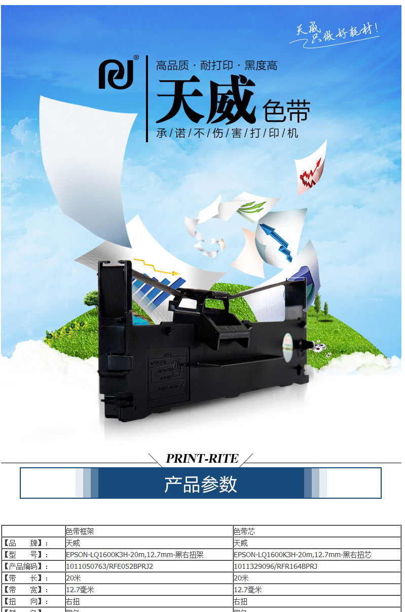 天威 LQ2090/LQ1600KIIIH 色帶芯RFR164BPRJ 20m*12.7mm 黑色