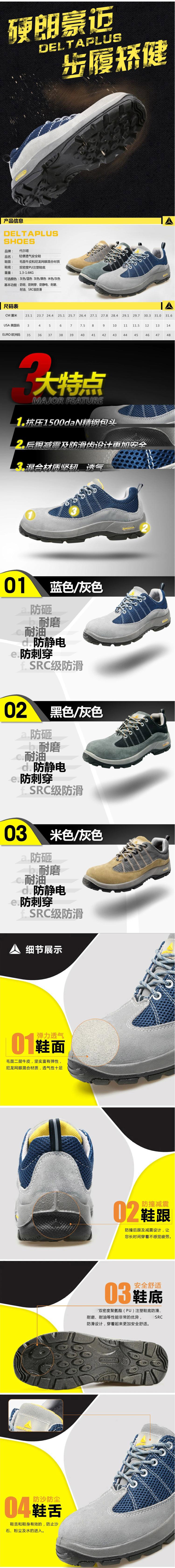 代爾塔 301322 防砸/防穿刺/防靜電/耐磨/耐油輕便安全鞋 42碼 灰藍色