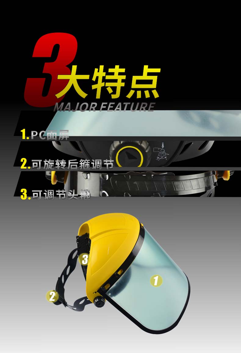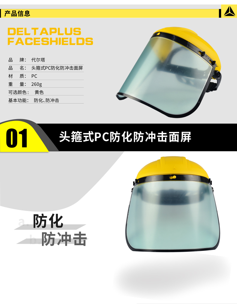 代爾塔 101304 頭箍式PC防化防沖擊面罩 黃色/黑色