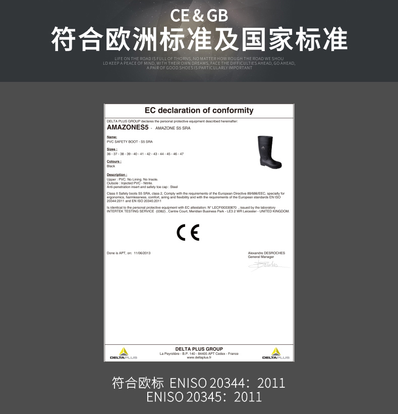 代爾塔 301407 防砸/防刺/防水/穿耐酸堿高筒防化靴 43碼