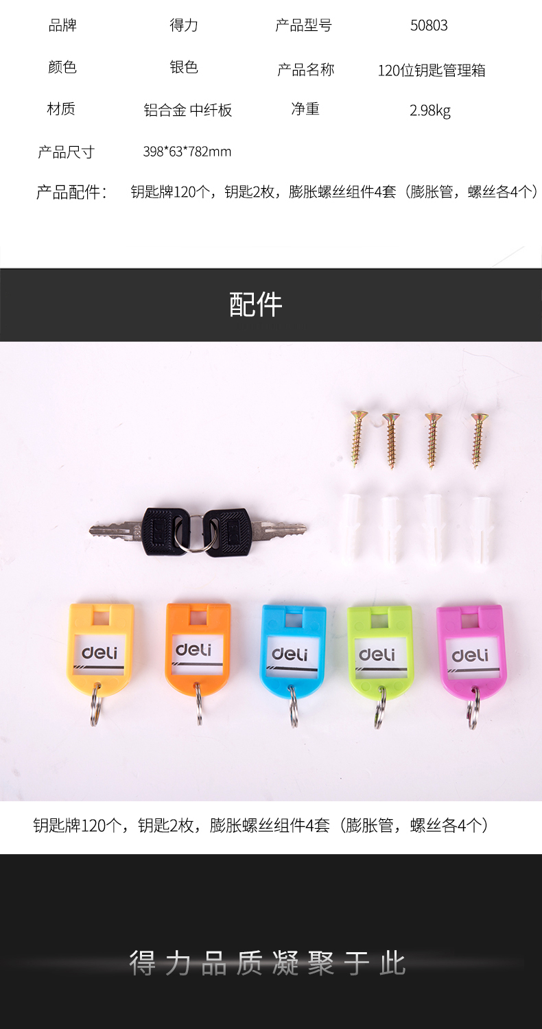 得力 50803 鋁合金鑰匙管理箱 120位 銀色