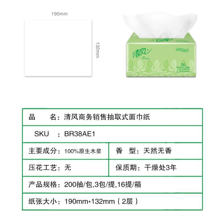 清風(fēng) BR38AE1 雙層塑包面紙 200抽/包 3包/提 16提/箱