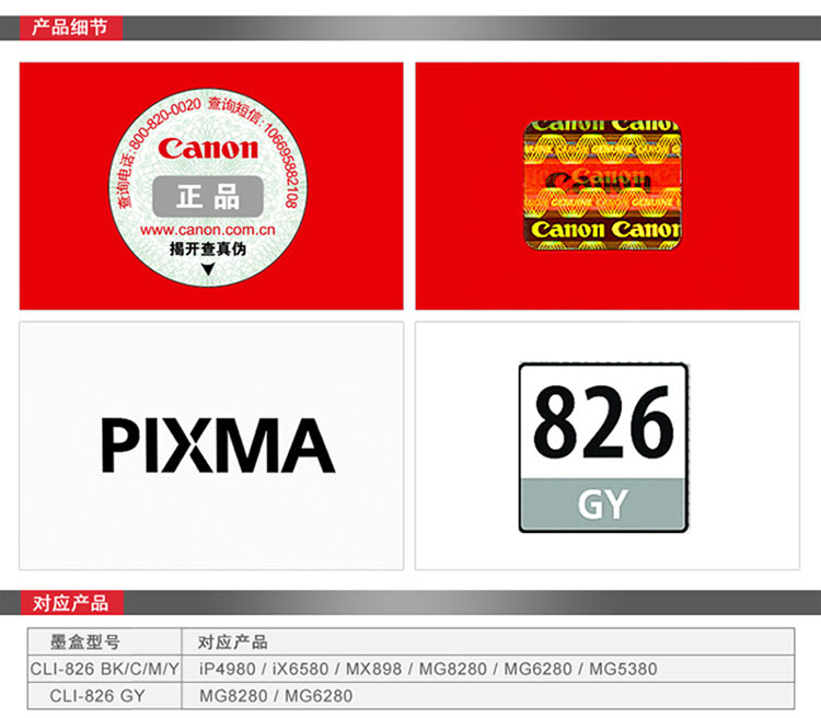 佳能 CLI-826M 墨盒 9ml 品紅色