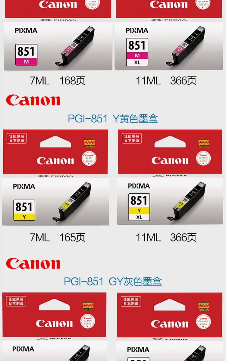 佳能 CLI-851Y 墨盒 7ML 黃色