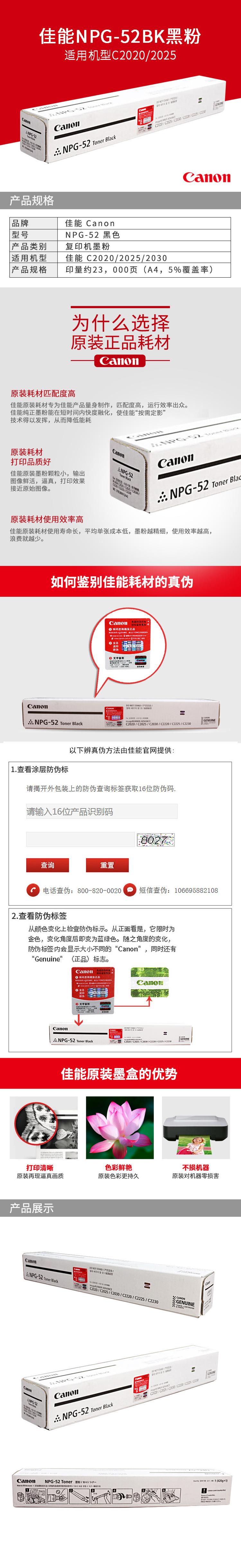 佳能 NPG-52BK 墨粉 23000張 黑色