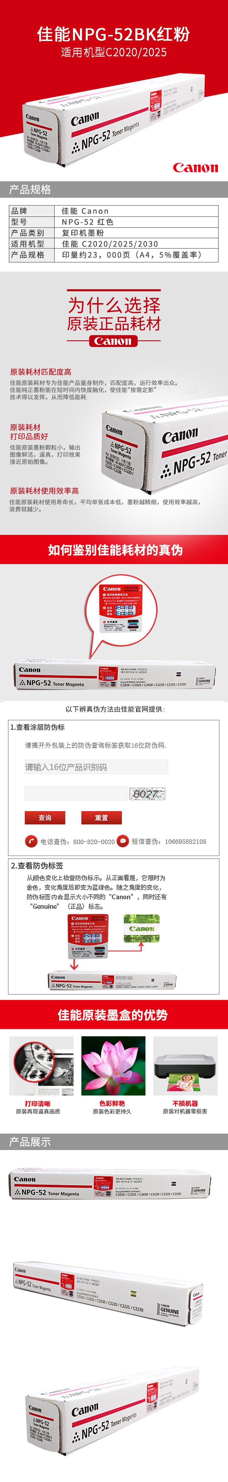 佳能 NPG-52M 墨粉 19000張 紅色