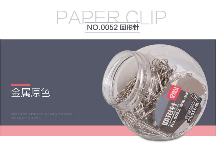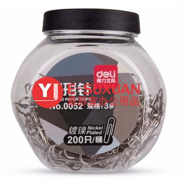 得力 0052 桶裝3#鍍鎳防銹回形針 200只/桶