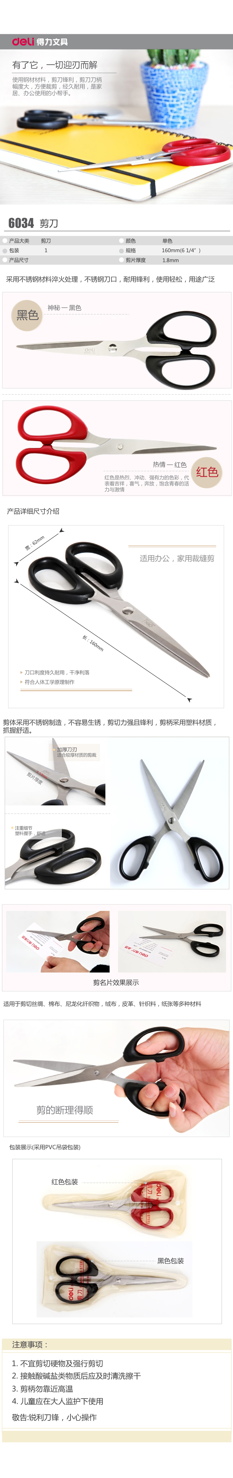 得力(deli) 6034 辦公剪刀 160mm 混色