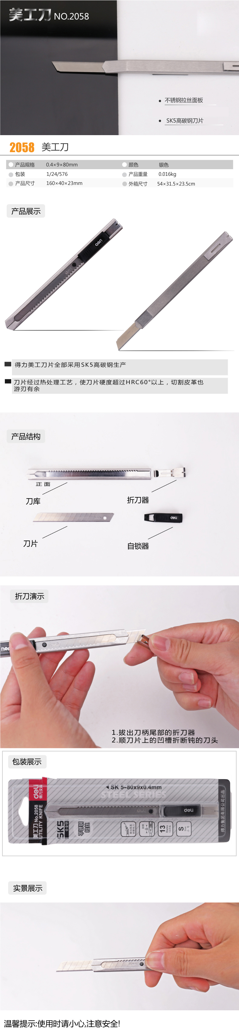 得力 2058 金屬小號美工刀 9mm 銀色