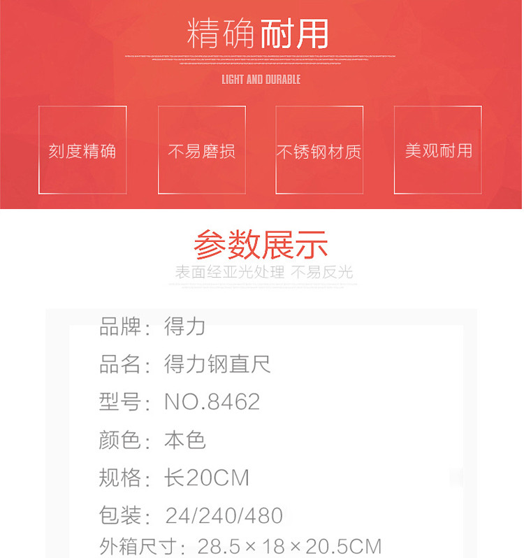 得力 8462 鋼直尺 20cm