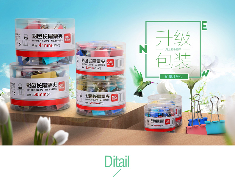 得力 8553ES 長(zhǎng)尾票夾 32mm 彩色 24只/筒