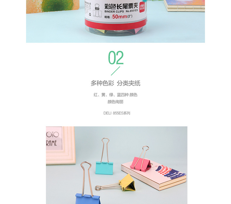 得力 8556ES 長(zhǎng)尾票夾 15mm 彩色 60只/筒